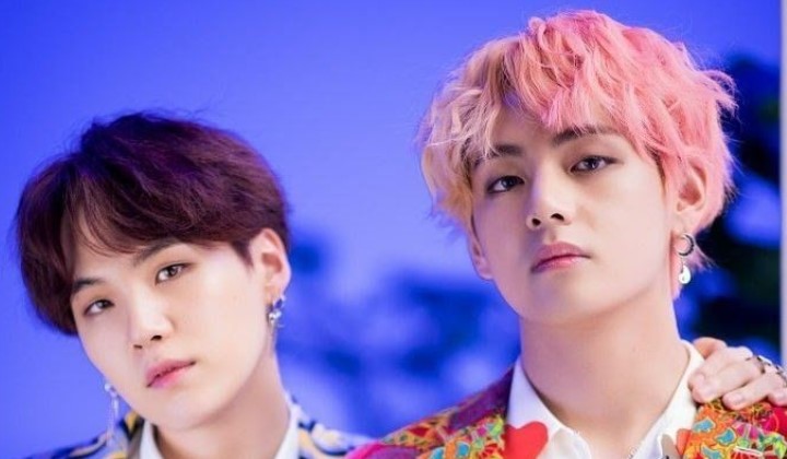 V BTS terciduk datang ke kamar Suga dengan tujuan memamerkan otot lengannya. Sayang siaran ini tak memperlihatkan wajah mereka hingga tuai rasa penasaran.
