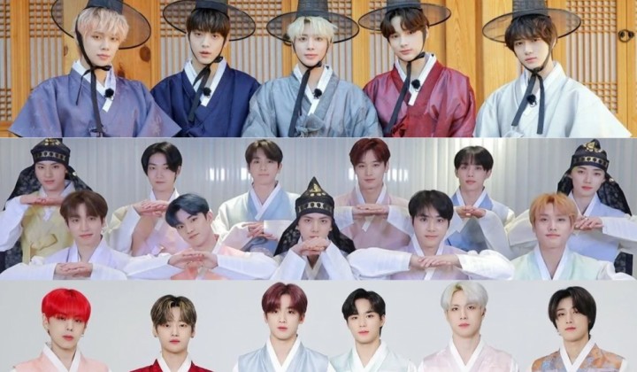 Dalam ucapan selamat hari raya Imlek untuk fans, para artis K-Pop juga mengenakan hanbok terbaiknya. Mulai dari Bangtan Boys, TXT, AB6IX, NCT, The Boyz, Park Ji Hoon, WEi, BAE173, Jung Se Woon, Kim Woo Seok, Victon, Kang Daniel, Kim Jae Hwan, A Pink, Highlight, Monsta X dan lainnya.
