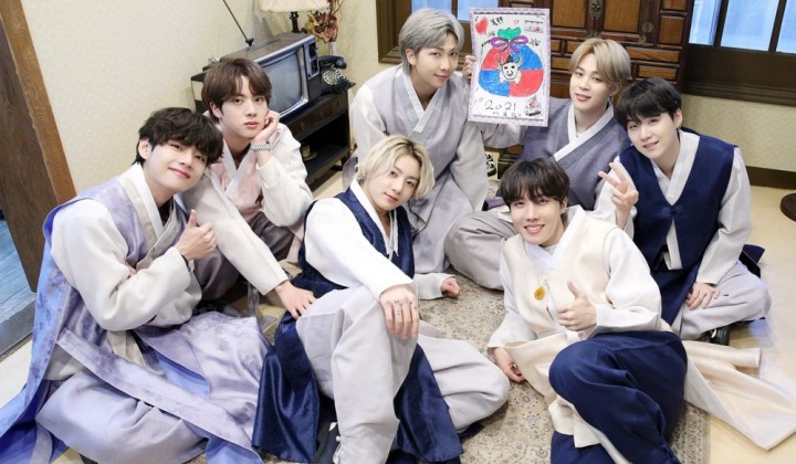 Merayakan Imlek, para member Bangtan Boys memberikan ucapan untuk para penggemar setia mereka dalam balutan busana tradisional Korea Selatan yang makin membuat mereka terlihat keren.
