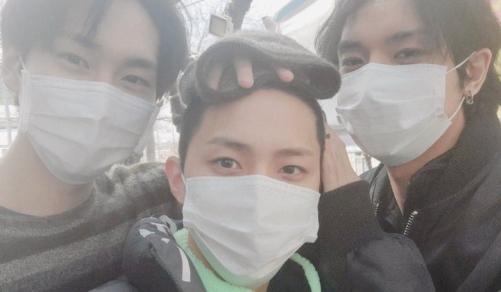 Mengucap salam perpisahan, Hui ditemani oleh rekannya di grup Pentagon, Shinwon dan Yuto sebelum resmi memulai tugas kemiliteran selama empat minggu terlebih di pelatihan dasar militer.