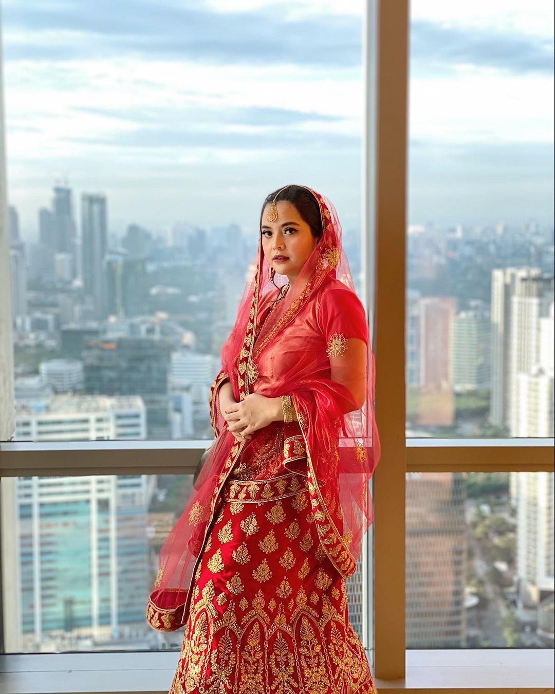 Tasya Kamila menajdi satu dari beberapa artis yang memamerkan foto dengan lebih dari satu gaya busana India. Selain mengenakan saree hijau, Tasya Kamila tak kalah bikin pangling saat berfoto dengan penampilannya dibalut baju tradisional tersebut berwarna merah. Pesona Tasya Kamila begitu terpancar terlebih dengan gaya berfotonya yang sontak membuat banyak netizen auto terpana melihatnya.
