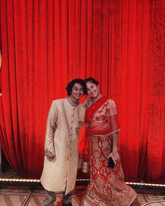 Pasangan muda lain yang tengah di mabuk asmara agaknya diwakili oleh Bastian Bintang dan Sitha Marino. Sepasang kekasih ini turut meramaikan potret sederet artis yang kondangan bertema India. Sitha Marino tampil cantik dengan saree merah sementara Bastian tampan memakai kurta berwarna beige. Layaknya anak muda lain, pasangan ini pun tersenyum ceria mengabadikan momen kebersamaan mereka kali ini.