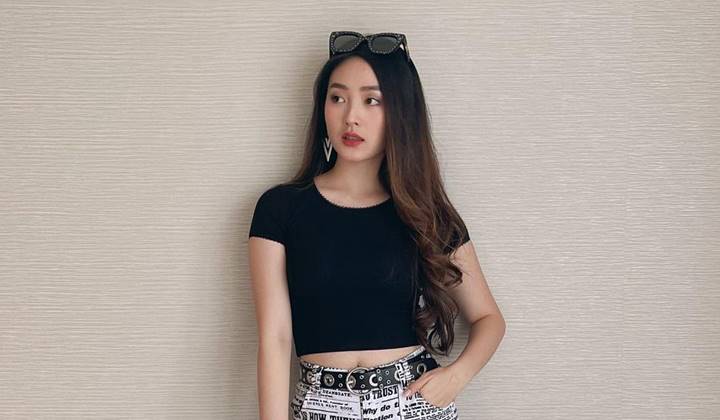 Wilona tampil dengan mengenakan kemeja berwarna putih dan rok pendek hitam. Wilona pun menguncir dua rambut panjangnya pada unggahan tersebut.