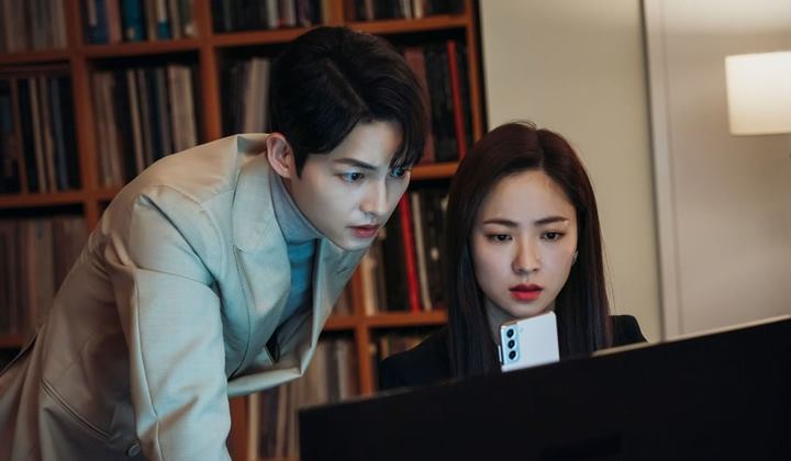 Song Joong Ki terlihat berusaha mencairkan suasana di lokasi syuting ketika ia dan Jeon Yeo Bin akan melakukan adegan berciuman di drama 'Vincenzo' di episode 14.