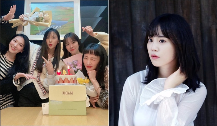 Dalam caption-nya, Gyuri menuliskan caption, "Beberapa hari yang lalu, itu adalah hari kami berkumpul untuk merayakan ulang tahun ke-14 debut KARA. Itu adalah waktu yang berarti seiring waktu berlalu. Terima kasih, Jiyoung karena telah menyiapkan buket bunga dan kue kejutan."