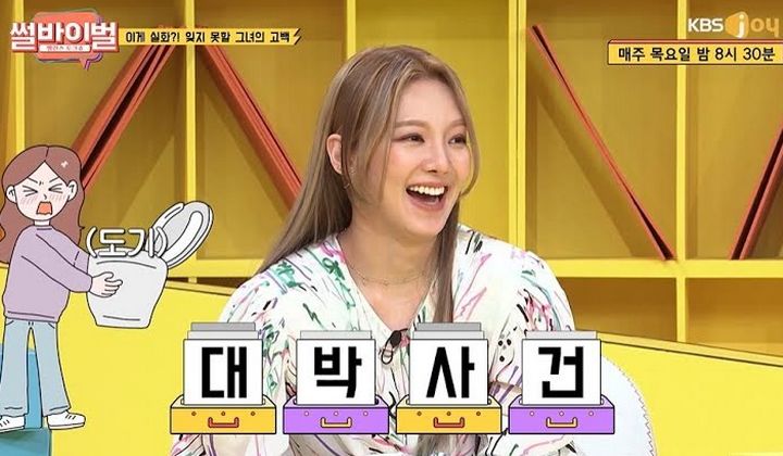"Aku pikir caranya mengungkapkan cintanya itu gila," kata Hyoyeon dan ini juga membuat Park Na Rae berbagi insiden yang dia dengar. "Aku mendengar tentang seorang wanita yang mengumpulkan kuku dan rambutnya untuk diberikan kepada pacarnya. Agar dia bisa mengingatnya," seru Park Na Rae.