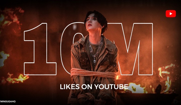 Prestasi Suga lainnya adalah dia menjadi artis solo pria kedua setelah Psy yang video musiknya ditonton lebih dari 10 juta kali. Selain itu, Suga juga menjadi artis solo pria ketiga yang video musiknya ditonton lebih dari 10 juta kali. Bersama Suga ada nama Psy dan Jennie. Suga juga menjadi artis Korea ke-5 dengan pencapaian serupa, selain artis lainnya seperti Bangtan Boys, Black Pink, Psy dan Jennie.