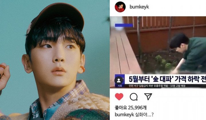 "Bahkan seorang selebriti terkenal terlihat menanam daun bawang di rumahnya," ungkap penyiar berita itu sembari menunjukkan foto Key yang sedang berada di kebun rumahnya. Gambar itu diambil dari salah satu episode MBC "I Live Alone" beberapa waktu yang lalu ketika Key memperkenalkan rumahnya.