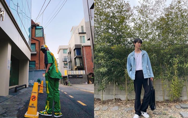 Dua anggota NCT ini juga bisa membuat foto di jalan terlihat estetik. Taeyong pilih foto di depan gedung-gedung, kalau Doyoung di depan pohon-pohon di samping jalan.
