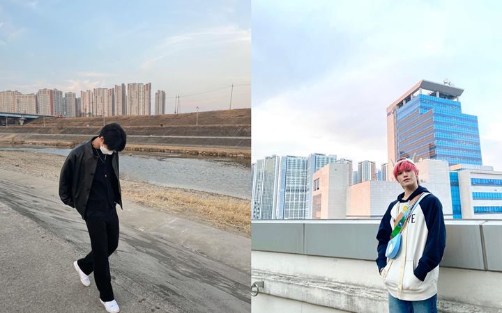 Langit yang terlihat indah memang patut banget dijadikan tempat foto. Doyoung abadikan momen di jalan dengan latar langit dan gedung dari jauh. Kalau Taeyong foto di atas gedung dengan latar langit dan gedung dari dekat.