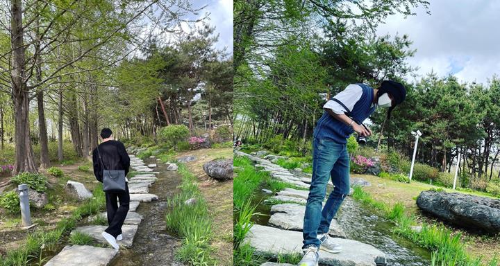 Kalau keluar sama teman, pastikan bikin foto selalu tampak beda seperti Doyoung dan Taeyong nih. Doyoung pilih foto dari belakang, sedang Taeyong dari depan di lokasi yang sama.