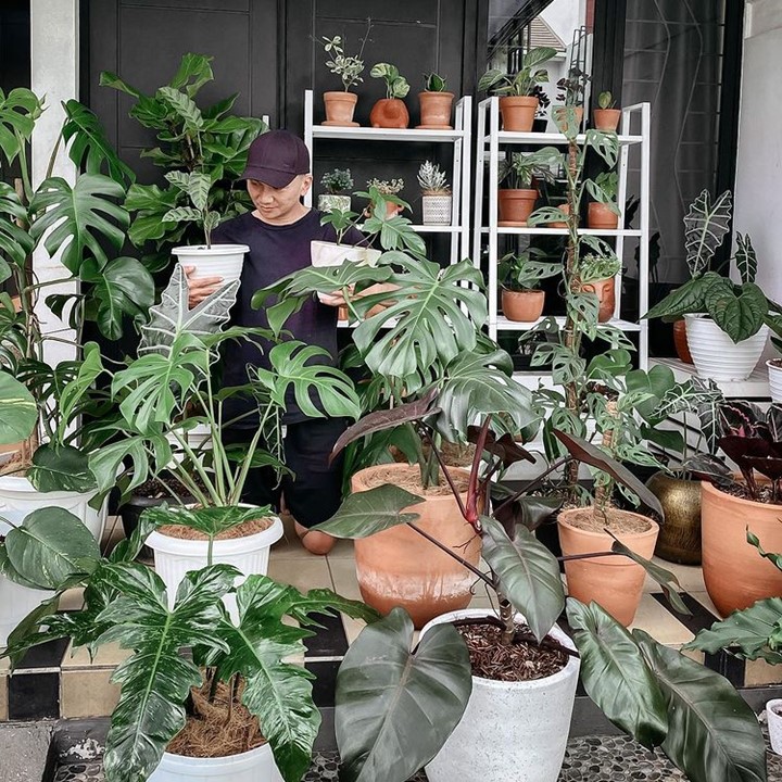 Kecintaannya dengan alam juga tercermin dari hobinya yang suka mengoleksi tanaman. Dalam potret di atas tampak Anji dikelilingi oleh berbagai jenis tanaman koleksinya. Apakah itu tanaman Janda Bolong?
