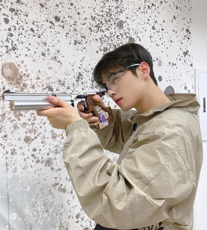 4. Biar Aman, Cha Eun Woo Gunakan Kacamata Sebelum Menembak
