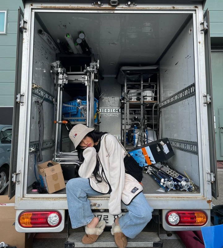 2. Foto Santai Saat Hwasa Duduk di Truck