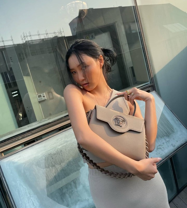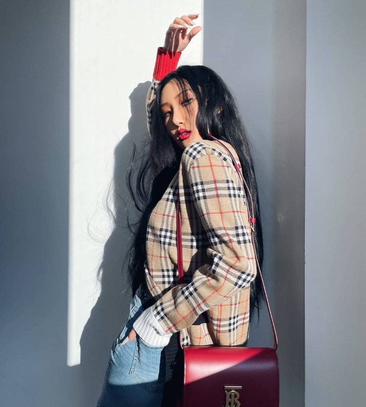 Menjadi idol yang sering menghiasi majalah ternama dengan parasnya yang cantik. Hwasa juga memiliki tubuh yang bagus lho. Pesonanya semakin memikat ketika ia memeluk tas yang senada dengan dress-nya. Tak heran, jika visual Hwasa membuatnya banyak dikagumi para fans.
