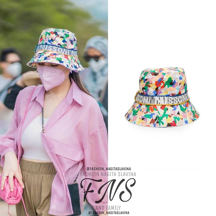 Tak kalah keren, Nagita Slavina juga mengenakan topi dari merek Missoni tipe Intarsia-Trimmed Printed Canvas Bucket Hat. Situs modesens.com menyebut bahwa topi tipe milik Nagita ini seharga USD 495 atau kira-kira senilai RP7,2 juta.