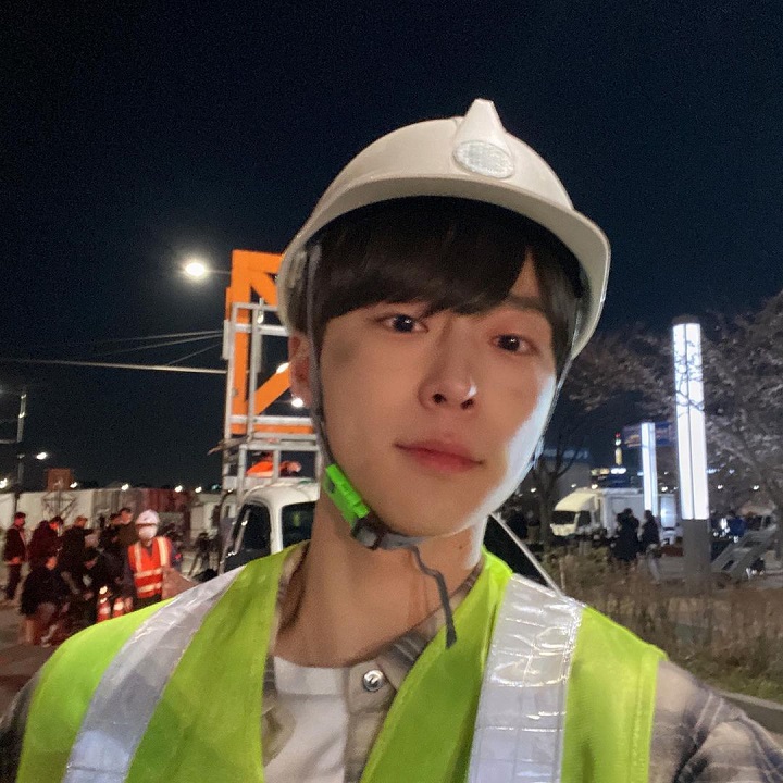Meski masih tergolong sebagai aktor rookie, pria lulusan Seoul Arts University jurusan akting ini tak perlu diragukan lagi kemampuannya. Bae In Hyuk tampak sedang berada di tengah lokasi syuting mengenakan pakaian dan helm proyek pembangunan.