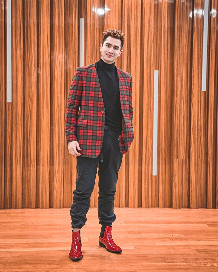 Kerap kali mengunggah potret diri mengenakan setelan jas, Verrell Bramasta tampak memiliki aura elegan. Kali ini, laki-laki berusia 24 tahun ini mencoba memadukan kaos turtle neck berwarna hitam, jas bermotif kotak-kotak, celana kain, dan sepatu boots berwarna hitam merah.