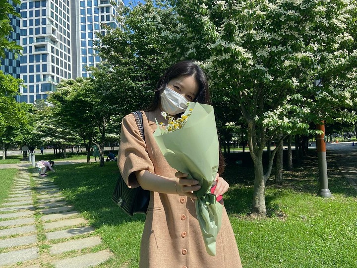 Sebagai leader di G-Friend, Sowon terkenal memiliki aura keibuan. Ia sangat penyayang dan mengayomi para membernya. Seperti di potret ini, Sowon terasa memancarkan kehangatan dengan bertingkah seolah memberikan bunga kepada penggemarnya.