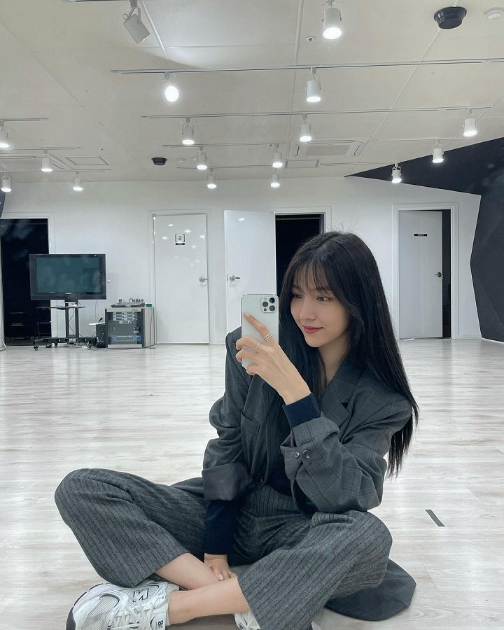 Debut pertama kali dengan G-Friend di tahun 2015, Sowon terkenal sebagai salah satu idol yang multitalenta. Perempuan berzodiak Sagitarius ini dapat mempelajari koreografi baru dengan cepat. Terlihat di potret ini, Sowon sedang berada di tengah ruang latihan dan melakukan mirror selfie.