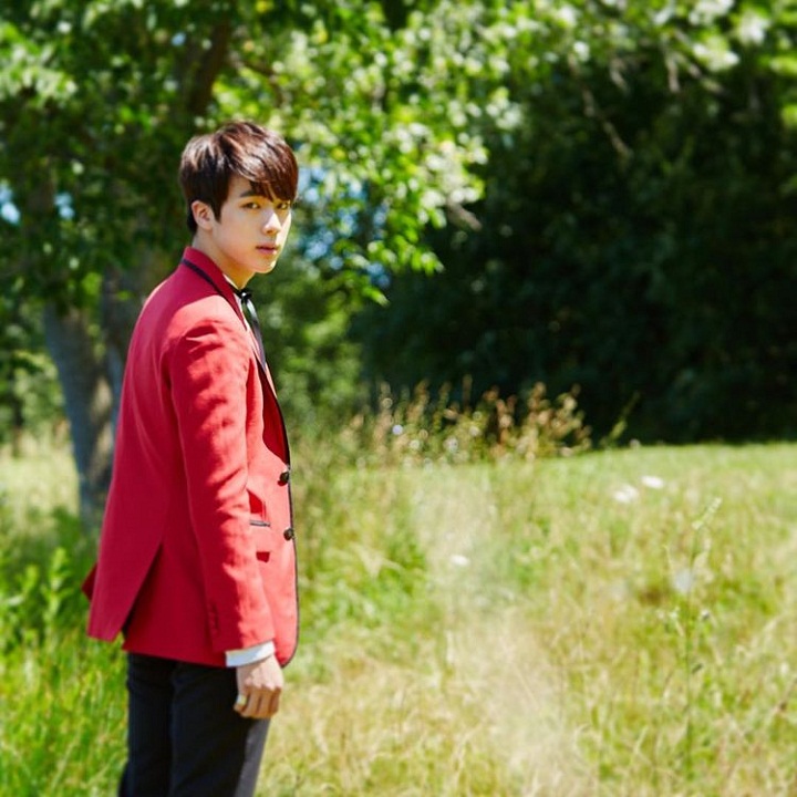 Potret pelantun "Butter" ini diambil tahun 2016. Jin tampak mengenakan jas merah dan bawahan hitam. Kendati demikian penampilan Jin tetap memukau yang membuktikan bahwa dirinya memang tampan sejak dahulu. Gimana menurut kalian?