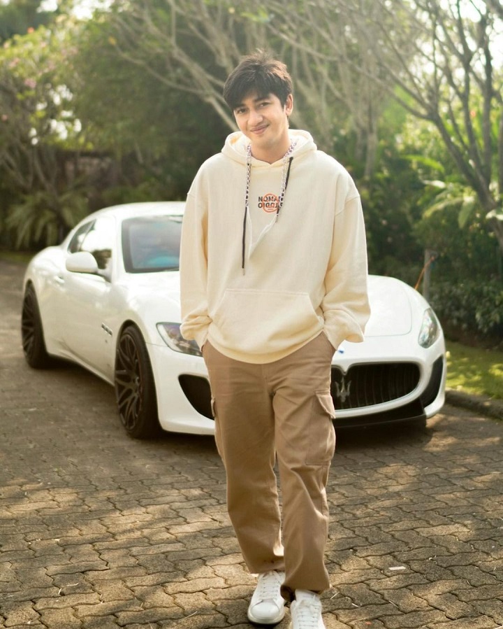 Harris dikenal sebagai sosok berparas manis. Tak heran jika ia cocok mengenakan berbagai style outfit. Kali ini, Harris membagikan potret dirinya sedang berada di depan mobil mewah sembari mengenakan outfit style hiphop. Ia memadukan hoodie berwarna krem, celana cargo warna khaki, dan sepatu putih.