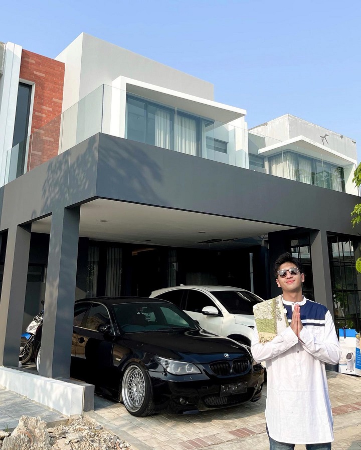 Saat merayakan hari raya Idulfitri 1442 H tahun ini, Harris tampak berpose dengan menangkupkan kedua tangannya di depan kediamannya. Laki-laki kelahiran tahun 1993 ini tampak memesona dengan outfit khas hari lebaran. Harris memadukan baju koko kombinasi warna navy dan putih, celana jeans, dan kacamata hitam. Tak lupa, sebuah sajadah tersampir di bahunya.