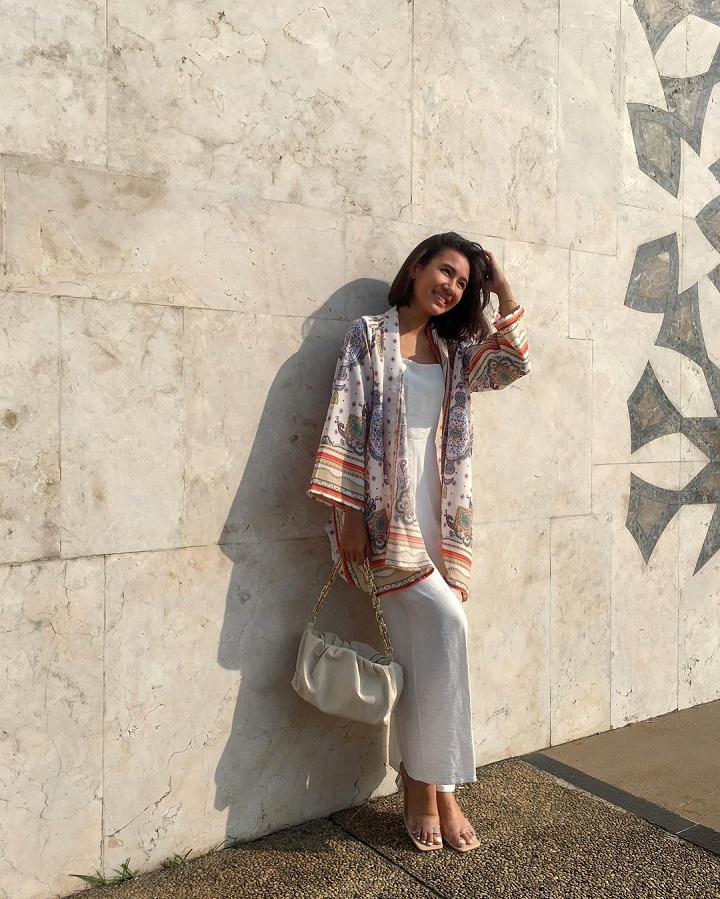 Seringkali tampil apa adanya, kali ini aktris berusia 22 tahun ini tampak anggun dengan OOTD yang dikenakannya. Shenina mengunggah potret ini bertepatan dengan hari raya Idulfitri 1442 H. Dalam rangka merayakan hari istimewa tersebut, ia memadukan gamis berwarna putih polos, outer motif, dan sandal heels transparan. Senyum yang terpancar di wajahnya pun menambah kadar keanggunan milik Shenina!