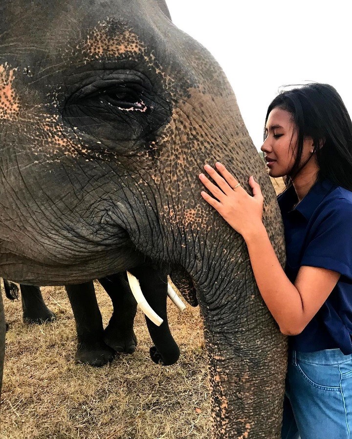 Meski memiliki wajah yang dingin dan judes, aktris kelahiran tahun 1999 ini ternyata memiliki hati yang besar. Hal ini dibuktikan melalui potret di atas. Terlihat Shenina sedang membelai lembut seekor gajah ketika berada di Taman Nasional Way Kambas. Potret ini diunggah bertepatan dengan hari gajah sedunia.