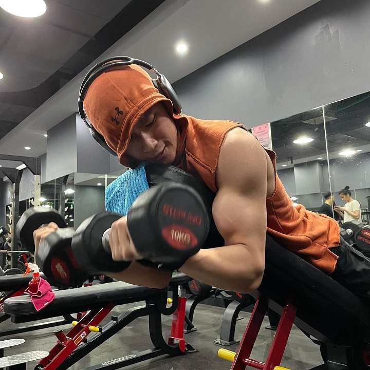 Remaja berusia 15 tahun ini telah melakukan rutinitas work out bersama sang ayah sejak kecil. Azka secara personal dilatih oleh Deddy saat membentuk massa otot. Seperti di potret ini, ia tampak sedang membentuk otot bisepnya dengan mengangkat beban sebesar 10 kg di masing-masing tangan. Keren banget!