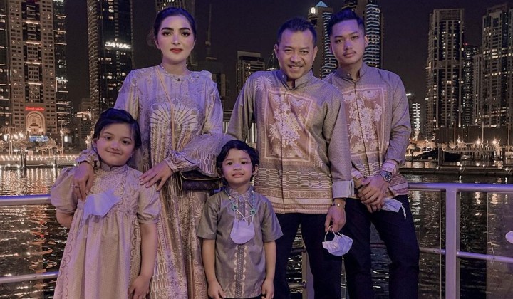 Melalui unggahan di akun Instagram pribadi, Ashanty dan keluarga kompak memakai seragam SD. Awalnya, Ashanty membagikan foto bersama sang suami, Anang Hermansyah dan ketiga anaknya, Azriel, Arsi dan Arsya.