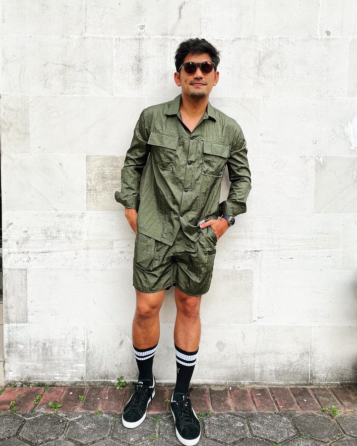 Usia tak lagi muda dan telah memiliki anak, tak menghalangi seorang Ibnu Jamil untuk tetap tampil stylish. Ia bahkan cocok dijuluki sebagai hot daddy saat mengenakan outfit keren seperti ini. Ibnu Jamil memadukan sepasang kemeja panjang dan celana pendek berwarna hijau, sepatu hitam, dan kacamata hitam.