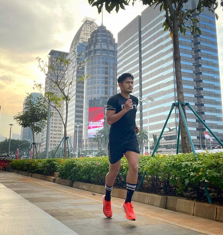 Pria kelahiran tahun 1982 ini selalu membagikan aktivitas berolahraganya di Instagram. Kali ini, Ibnu Jamil tampak sedang melakukan rutinitas berlarinya di trotoar pejalan kaki. Berlatarkan gedung-gedung tinggi di Jakarta, ia terlihat sangat fokus sembari berlari dengan postur yang ideal.