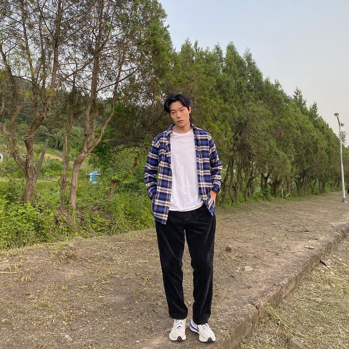 Sosok Ryu Jun Yeol terkenal dengan aura yang memancarkan boy crush. Aura yang dimilikinya ini seolah semakin didukung dengan OOTD yang dikenakannya seperti potret di atas. Ia memadukan t-shirt polos berwarna putih, kemeja flanel motif kotak-kotak berwarna dominan biru, celana hitam, dan sepatu putih. Keren banget!