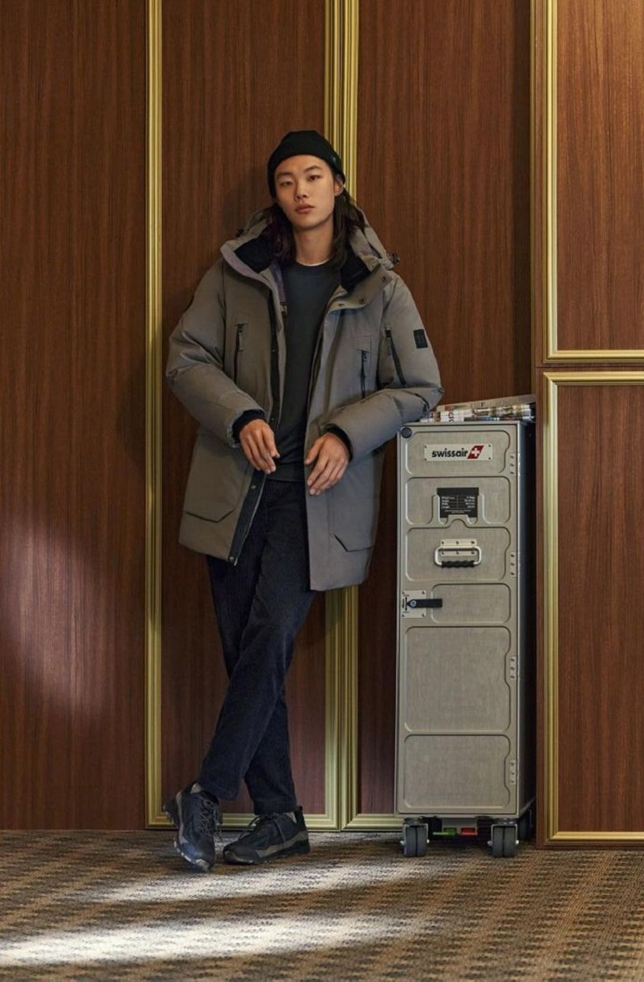 Ketika musim dingin tiba, aktor kelahiran tahun 1986 ini memilih untuk mengenakan outfit yang bisa menghangatkan tubuhnya. Kali ini, Ryu Jun Yeol tampak memadukan t-shirt berwarna hitam, celana hitam, jaket tebal berwarna abu-abu tua, sepatu hitam, dan topi beanie warna hitam. Outfit yang dikenakannya ini berasal dari merek premium outdoor lifestyle yaitu KOLON SPORT.