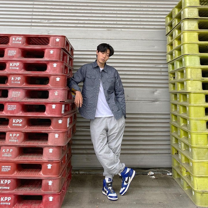 Aktor berzodiak Libra ini tampak menunjukkan ekspresi datar sembari mengenakan OOTD serba warna netral. Ryu Jun Yeol memadukan t-shirt polos warna putih, kemeja motif berwarna abu-abu tua, joger pants merek Nike warna abu-abu muda, serta sepatu Nike kombinasi warna biru, putih, dan hitam.