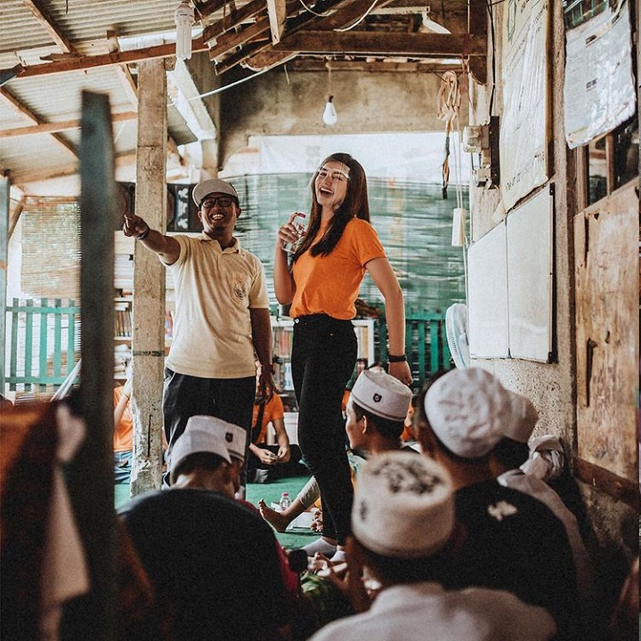 Jihane tampak menikmati waktunya bersama anak-anak di Panti Sosial Asuhan Kiyai Ageng Fatah, Semarang. Jihane bersama tim Act Your Thought Movement tengah memberikan bantuan ke panti sosial tersebut. Bersama tim tersebut, Jihane telah melakukan banyak kegiatan sosial mulai dari membersihkan sampah hingga membantu korban kebakaran.