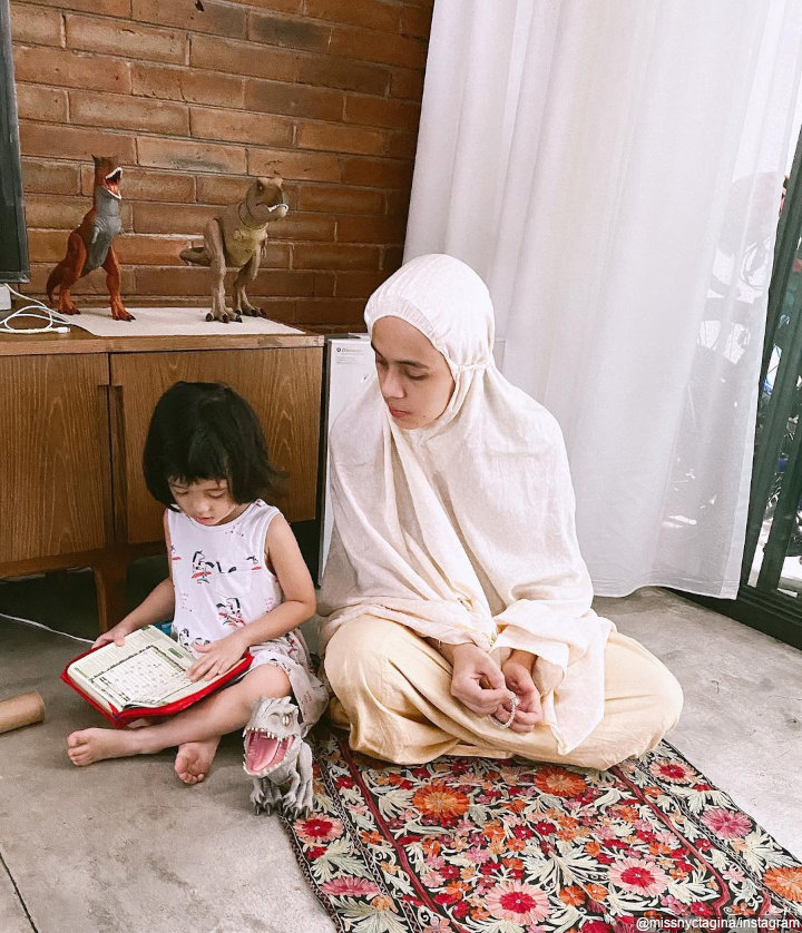 Nycta juga merupakan salah satu artis yang hijrah dan mantab mengenakan hijab. Tak heran jika artis sekaligus dokter itu menanamkan nilai religi kepada anak-anaknya. Lengket dengan sang ibu, Uti kerap mengikuti Nycta saat mengaji maupun salat.