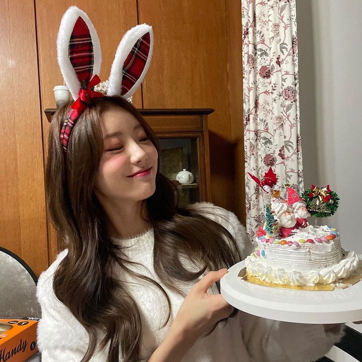 Saat merayakan hari Natal tahun lalu, idol berzodiak Pisces ini tampak sangat bahagia. Luda terlihat membawa kue tart bernuansa Natal sembari mengenakan bando lucu berbentuk telinga kelinci. Nuansa warna hijau dan merah khas Natal terlihat menghiasi bando dan kue tartnya itu.