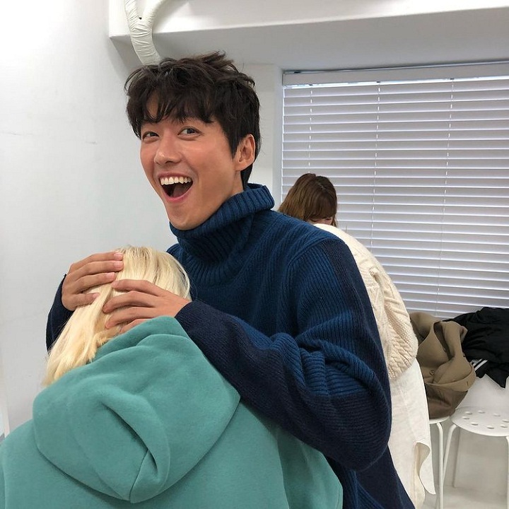 Jauh dari kata serius dalam drama atau film, Nam Goong Min ternyata adalah sosok yang manis saat tersenyum lebar. Dia juga terkenal ramah saat di luar syuting. Nam Goong Min dalam potret di atas rupanya tengah bercanda dengan sang asisten dengan memainkan rambut pirangnya.