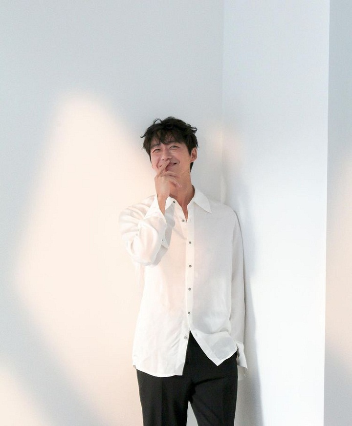 Nam Goong Min terlihat menawan dengan senyum tipis yang tertoreh di wajah. Berpose ala candid, aktor kelahiran tahun 1978 itu menatap cerah ke depan sambil memegang kerah bajunya. Nam Goong Min membuka bibirnya dan tersenyum tipis. Ganteng banget!