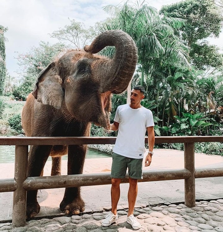 Saat travelling, Vincent sangat suka berinteraksi dengan beberapa fauna. Dalam potret di atas, Vincent tengah bermain-main dengan gajah di Bali Zoo. Saat mengunjungi Kalimantan Timur, Vincent juga bermain-main dengan ular. Dia dengan santai menggoda hewan melata itu dan mengalungkannya di leher. The best pokoknya!