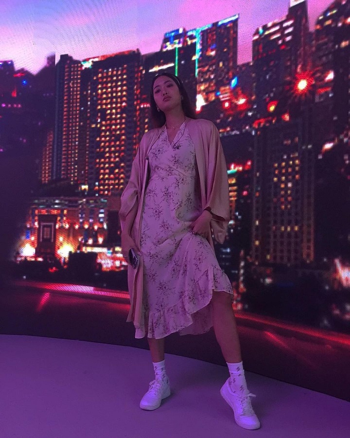 Baru-baru ini Vierratale berkesempatan manggung di acara Daihatsu Musik Asik. Widy pun tampil keren dengan outfit-nya yang kece. Penyanyi kelahiran tahun 1990 ini memadukan long dress motif warna krem, long outer polos berwarna gold, dan sepatu putih.