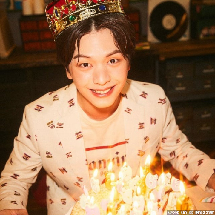 Saat tersenyum, aura ceria Sungjae begitu menguar. Bintang drama "Guardian: The Lonely and Great God" ("Goblin") itu terlihat bahagia dan tersenyum ke kamera. Sungjae tampil ganteng dengan mahkota dan busana kasual berwarna putih bermotif.