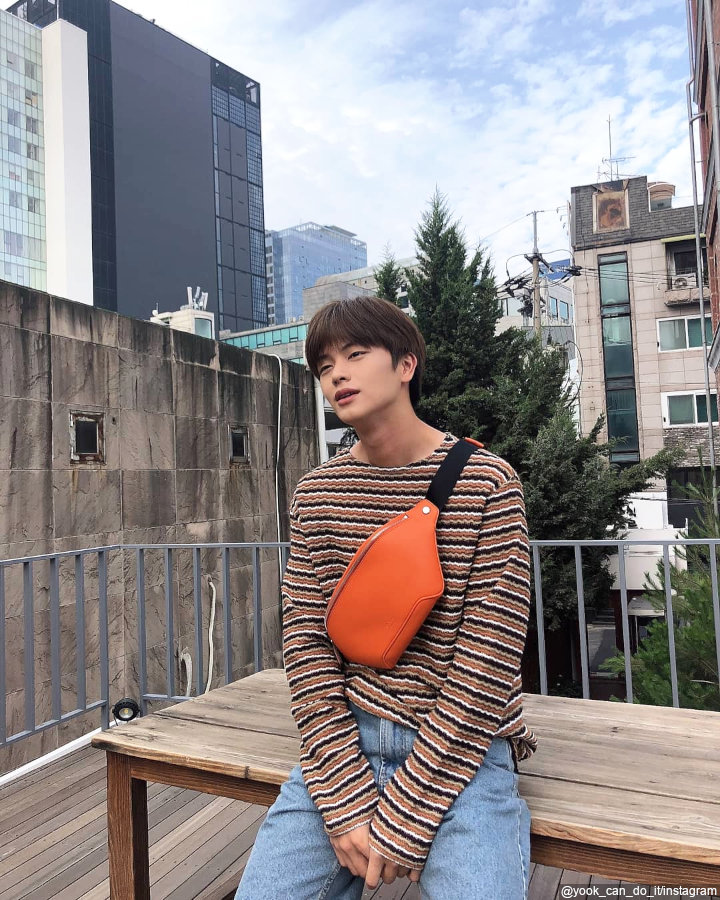 Fotogenik abis, Sungjae terlihat menawan tanpa banyak usaha untuk berpose. Bermodal duduk di atas kursi kayu dan menatap ke depan, Sungjae tetap terlihat keren. Gaya busana yang dia kenakan pun terkesan simpel dan sederhana, yaitu perpaduan kaos bergaris dan celana jeans serta waist bag.