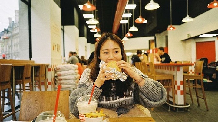 Han Seung-yeon tengah menikmati sebuah hamburger di restoran. Artis cantik itu tampak menikmati makanannya dengan khidmat. Di meja Han Seung-yeon tampak ada beberapa camilan seperti kentang goreng dan minuman. Saat makan dia tetap terlihat cantik dan imut.