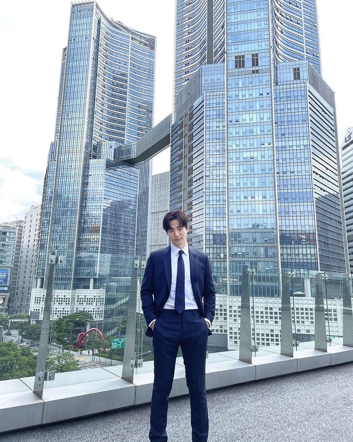 Seiring bertambah usia, Junho justru semakin terlihat gagah dan menawan. Terlebih, saat pelantun lagu "My House" ini sedang memakai outfit rapi seperti di potret ini. Berlatarkan gedung-gedung bertingkat, Junho memadukan kemeja warna putih dengan setelan jas, celana, dan dasi yang seluruhnya berwarna navy.