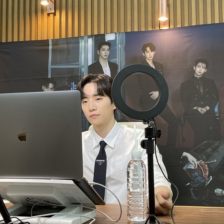 Karena terkendala pandemi, Junho dan 2PM melakukan fansign secara online bersama para penggemar saat merilis album terbaru bertajuk "MUST". Berlatarkan potret 2PM, idol berzodiak Aquarius ini tampak serius saat melakukan video call event. Junho terlihat bersungguh-sungguh berkomunikasi dengan orang-orang yang selalu mendukungnya itu.