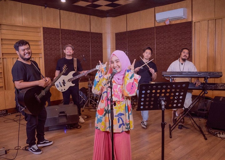 Masih menginjak usia 20-an, penyanyi kelahiran tahun 1996 ini tentunya tak ketinggalan untuk mengenakan OOTD kekinian. Saat sedang berada di ruang latihan bersama band pengiringnya, Fatin memadukan blouse dengan motif dan warna yang trendy dengan rok plisket serta hijab pashmina pink. Perpaduan outfit yang sangat keren!