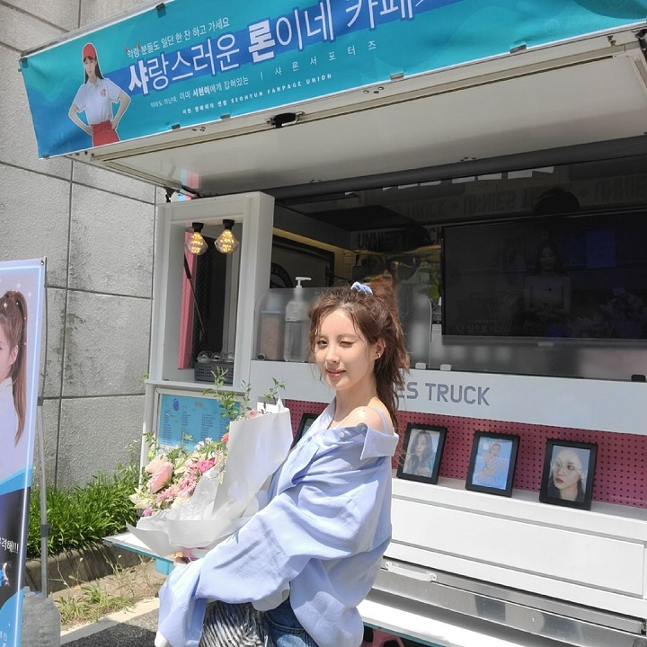 Saat sedang menjalani proses syuting film bertajuk "Holy Night: Demon Hunters", Seohyun mendapatkan kiriman food truck dari orang-orang terdekatnya. Berbalut outfit bernuansa biru, ia tak lupa untuk mengabadikan momen di depan hadiahnya itu bersama sebuket bunga.